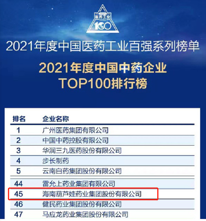 万众瞩目的2021年度中国医药工业百强系列榜单在会上盛大发布,ag电玩药业集团百尺竿头更进一步,位列中国中药企业TOP100排行榜第45位,连续第三年入围中国中药企业TOP100百强榜。